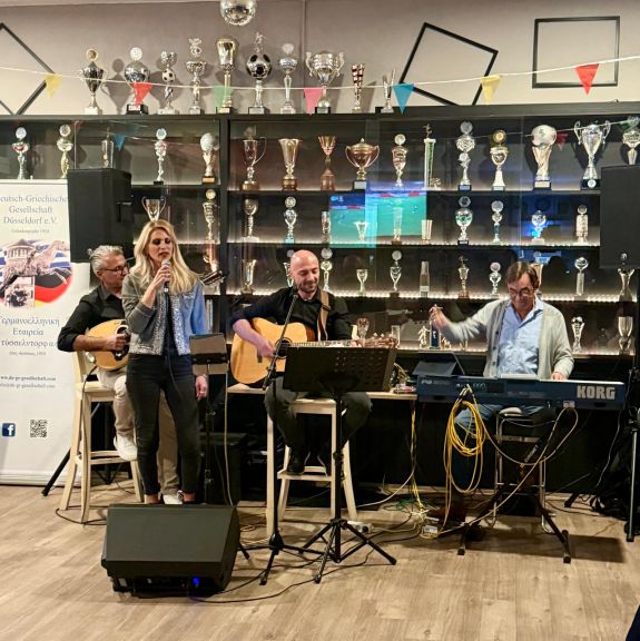 Das Sommerfest mit Live-Musik der Gruppe "The Greek Music Train" für Mitglieder, Freundinnen und Freunde der DGGD fand im gut gefüllten Clubhaus DSC 99 statt. Clara Gerlach, Bürgermeisterin der Stadt Düsseldorf, betonte in ihrem Grußwort ihre Wertschätzung für Vereine wie der Deutsch-Griechischen Gesellschaft und ihre Bedeutung für den gesellschaftlichen Zusammenhalt und die Vernetzung. "The Greek Music Train" kam schnell in Fahrt und sorgte mit einer Reise durch die griechische Musik für gute Stimmung mit Tanz und Gesang. Nachfolgend einige Impressionen der Veranstaltung.