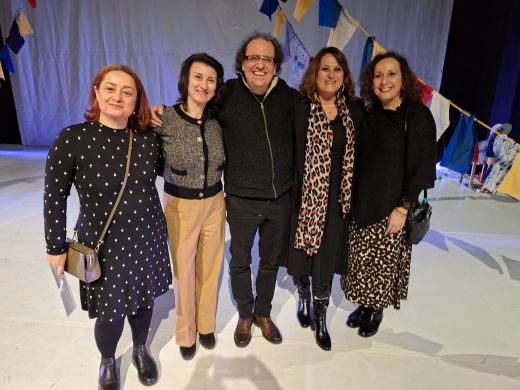 Gruppenbild mit Dramatiker und Regisseur Kostas Papakostopoulos (Mitte)